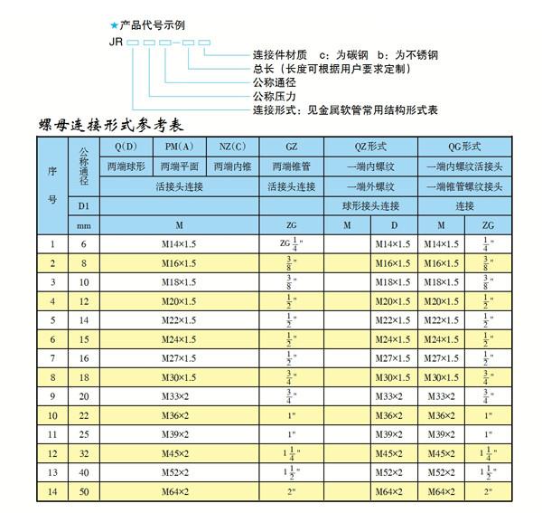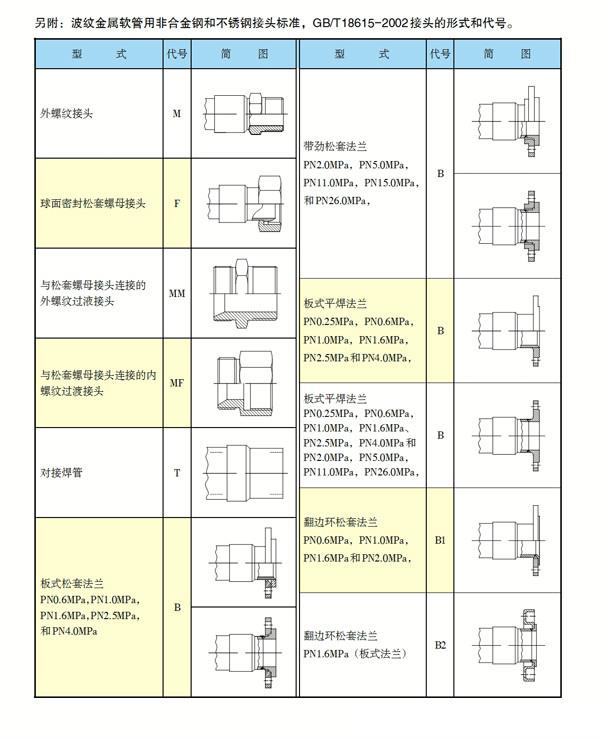 波紋金屬軟管標(biāo)準接頭型式和代號